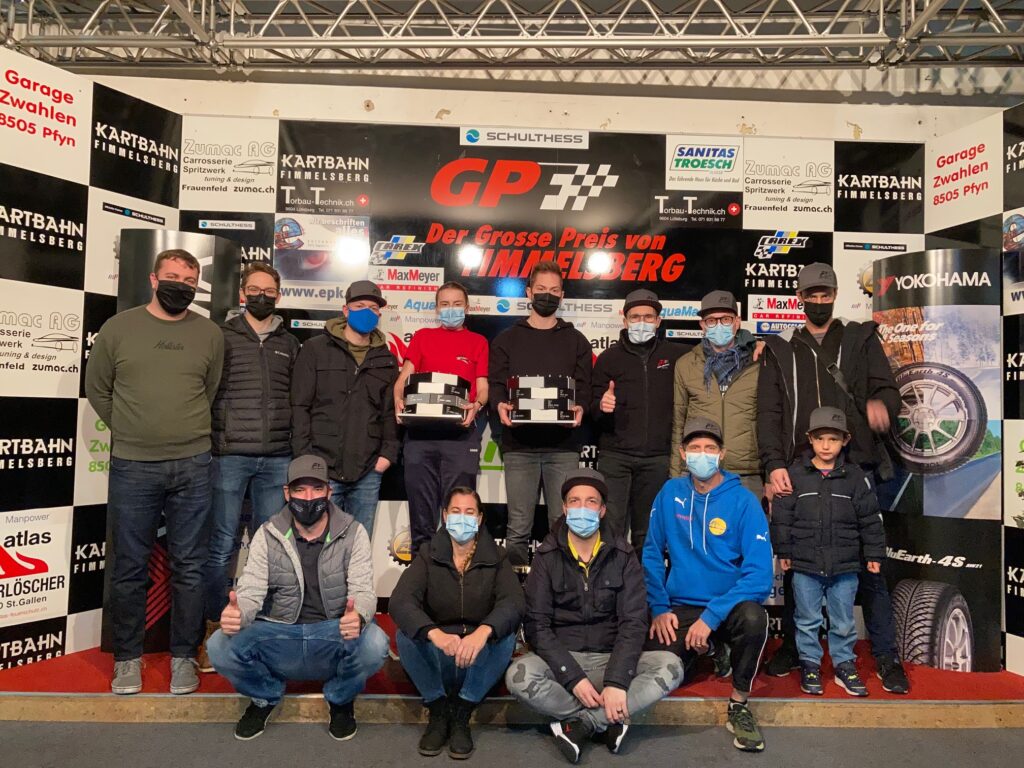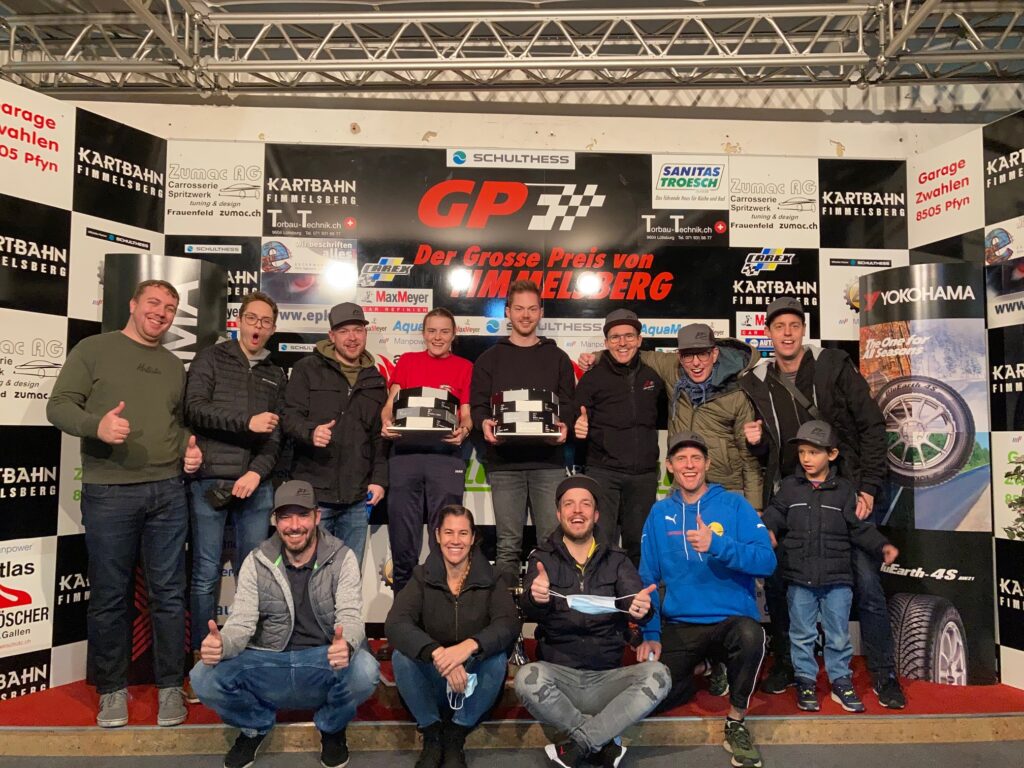 Die Hauptstrecke 2021 des F1-Club Rheintal in Fimmelsberg war Schauplatz des 6. und 7. Laufs. 6 Herren und 2 Damen nahmen die beiden Sprintrennen in Angriff. Dabei gab es in beiden Läufen ein Kuriosum: zum wohl ersten Mal in der Geschichte des F1-Club Kart GPs gab es keine Überholmanöver. Die Gruppe fuhr in umgekehrter Reihenfolge zum letzten Lauf los und so kamen sie auch nach 20min ins Ziel. Dasselbe in Grün dann auch im zweiten Lauf. Es sei aber auch gesagt, dass die Rundenzeiten alle extrem nah beieinander waren und es keinerlei Rempeleien oder Dreher gab. Es wurde also sehr konzentriert gekämpft. Den ersten Lauf entschieden Rino Haas und Mia Hutter für sich. Matthias Weder führte die Verfolgergruppe an. Mia konnte auch im zweiten Lauf die volle Punktezahl einfahren. Bei den Herren holte Altmeister Stephan Oehry aber die 10 Punkte für den ersten Platz ab. Er hatte Breu und Eigenmann an seiner Stossstange kleben. Fürs Gesamtklassement bedeutet dies dass Rino weiterhin auf Titelkurs fährt mit 11 Punkte Vorsprung auf Angelo. Roger und Mats folgen mit nur 1 Punkt Unterschied zueinander. Auch Martin Hartmann wird noch mitkämpfen um das Gesamt Podest. Bei den Damen führt Mia Hutter unangefochten die Rangliste an… Die Racerinnen und Racer freuen sich aufs Finalrennen am 4. Dezember. Aufgrund der Coronasituation wird dieses auch im 2021 in einem anderen Rahmen stattfinden als in der Vergangenheit. Infos und Einladungen folgen…