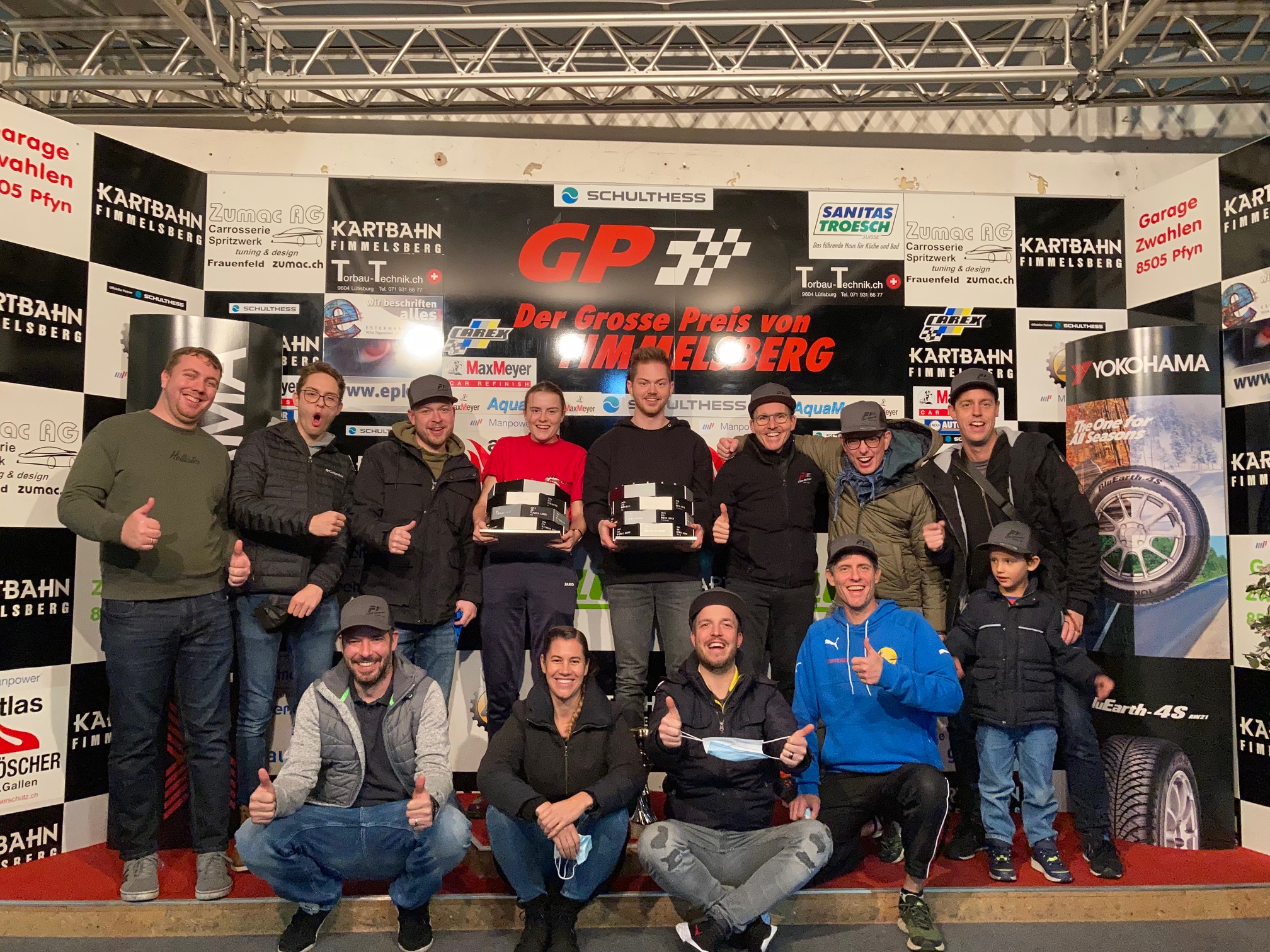 Der F1-Club Rheintal rühmt sich, für die Meisterin und den Meister des Kart-Grand Prix eine der wohl schwersten Motorsport-Trophäen der Welt zu überreichten. Diese Trophäe wird in Kreisform alljährlich um einen kleinen Metallblock ergänzt, auf welchem die Angaben der Siegerin bzw. des Siegers eingraviert sind. So sind seit 1998 bereits 24 Gewinnerelemente zusammengekommen und die Trophäe ist mit ihrem Sockel auf stolze 17 Kilogramm angewachsen. Sie wurde im Rahmen der Siegerehrung auch wieder an die Vereinsmeisterin Mia Hutter aus Diepoldsau übergeben, welche 2021 bei den Frauen vor Rekordmeisterin Alexandra Breu aus Oberegg und Leonie Scheiwiller aus Kirchberg SG triumphierte. Nach den Anstrengungen des kurz zuvor zu Ende gegangenen Rennens war das lange ersehnte und verdiente in die Höhe stemmen dieses schweren Pokals aber verständlicherweise etwas zu viel verlangt für die 20jährige Racerin.