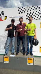 Am 13. Mai 2017, machten sich 11 F1-Club Members und Familienangehörige auf nach Teningen und Rust zum 1. F1-Club Jubiläumsausflug dieses Jahres. Obwohl wir mit Regen gerechnet hatten, war für den 1. Kart GP Lauf 2017 auf der offenen Kartpiste in Teningen (D) perfektes Rennwetter. Im Qualifying konnten sich die alten Hasen wieder an die coole Bahn gewöhnen und die, die noch nie in Teningen gefahren waren, mit den Gegebenheiten anfreunden. Es ist schon was anderes, hier zu fahren als indoor. Roger konnte das Qualy dominieren und zeigte, dass er immer noch 47er Zeiten drauf hat. Jens und Joel waren ihm aber dicht auf den Fersen. Andi, Heiko und Nik komplettierten das Feld. Wir starteten danach in umgekehrter Reihenfolge zum 1. Rennen, wobei Jens und Roger in altbekannter „Zügelmanier“ ihre Runden abspulten. Auch Joel konnte den beiden dicht auf den Fersen bleiben und somit änderte sich gegenüber dem Quali auch nichts mehr am Podest. Jens feierte seinen allerersten F1-Club Kart GP Sieg, Herzliche Gratulation an Jens! Roger konnte zwar immer wieder aufholen, aber nicht überholen. Joel als Rookie hatte mächtig Spass an der Bahn und natürlich auch am Podestplatz. Andreas hatte sich leider einen Plattfuss eingefahren und musste sich somit mit 4 Punkten begnügen. Heiko und Nik hatten ebenfalls einen heissen Fight, leider drehte sich Nik dann aber durch einen Verbremser in der ersten Kurve. Mia war leider zum Zuschauen verdonnert durch eine Sportverletzung, sie hat dafür ein paar supertolle Fotos geschossen… Den Jahresstand findet ihr wie immer wenn ihr auf „weiterlesen“ klickt.